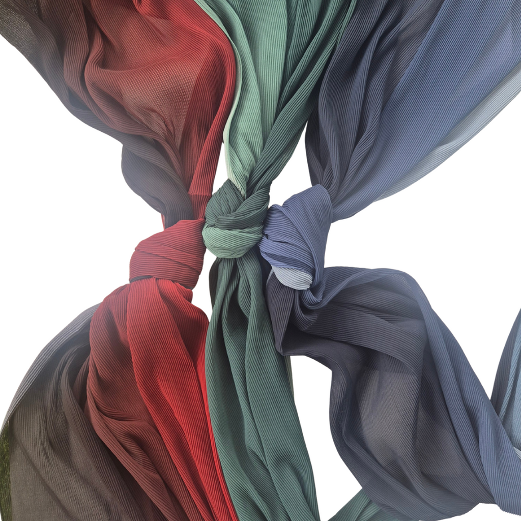 The "Crimpled Chiffon Ombre" scarf features a lightweight, crinkled chiffon fabric with a beautiful ombre effect, transitioning seamlessly between colors. Elegant and versatile, it adds a soft, airy touch to any outfit.