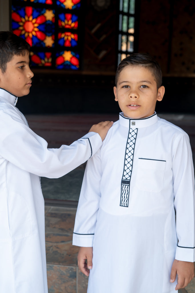 Introducing our enchanting kids' collection, drawing inspiration from the captivating charm of Palestine. Our Palestine-inspired kids' Kefiya kurtha captures the essence of tradition and playfulness, blending intricate patterns and vivid colors to ignite young imaginations. Each piece is thoughtfully designed with comfort and durability in mind, ensuring that your little ones can explore, learn, and create memories in style. Let them embrace their cultural roots with garments that celebrate Palestinian heritage, while sparking joy and adventure in every moment.
